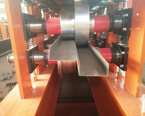 輥壓成型系統由機架、傳動部件及冷彎成型輥輪組等組成。分為式車輪旋轉成型,成型效果好,減少輪子和原材料之間的摩擦力,調試方便、。